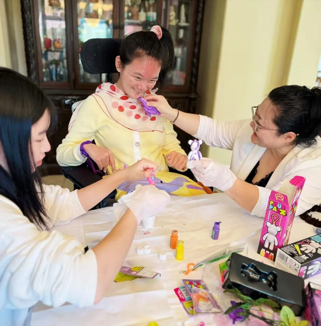 On October 21, 2025, Draw Together celebrated Aqua’s 16th birthday with a joyful art filled party! Around 10 kids and 10 adults joined the celebration, spending the day painting custom bear-themed art, playing games, and enjoying delicious cake. One of the highlights was a special collaborative art activity where the kids wrote adjectives that describe Aqua on the petals of a flower drawn on canvas. It was a beautiful way to honor her kindness, creativity, and bright spirit! Aqua had an amazing time surrounded by friends, family, and art.