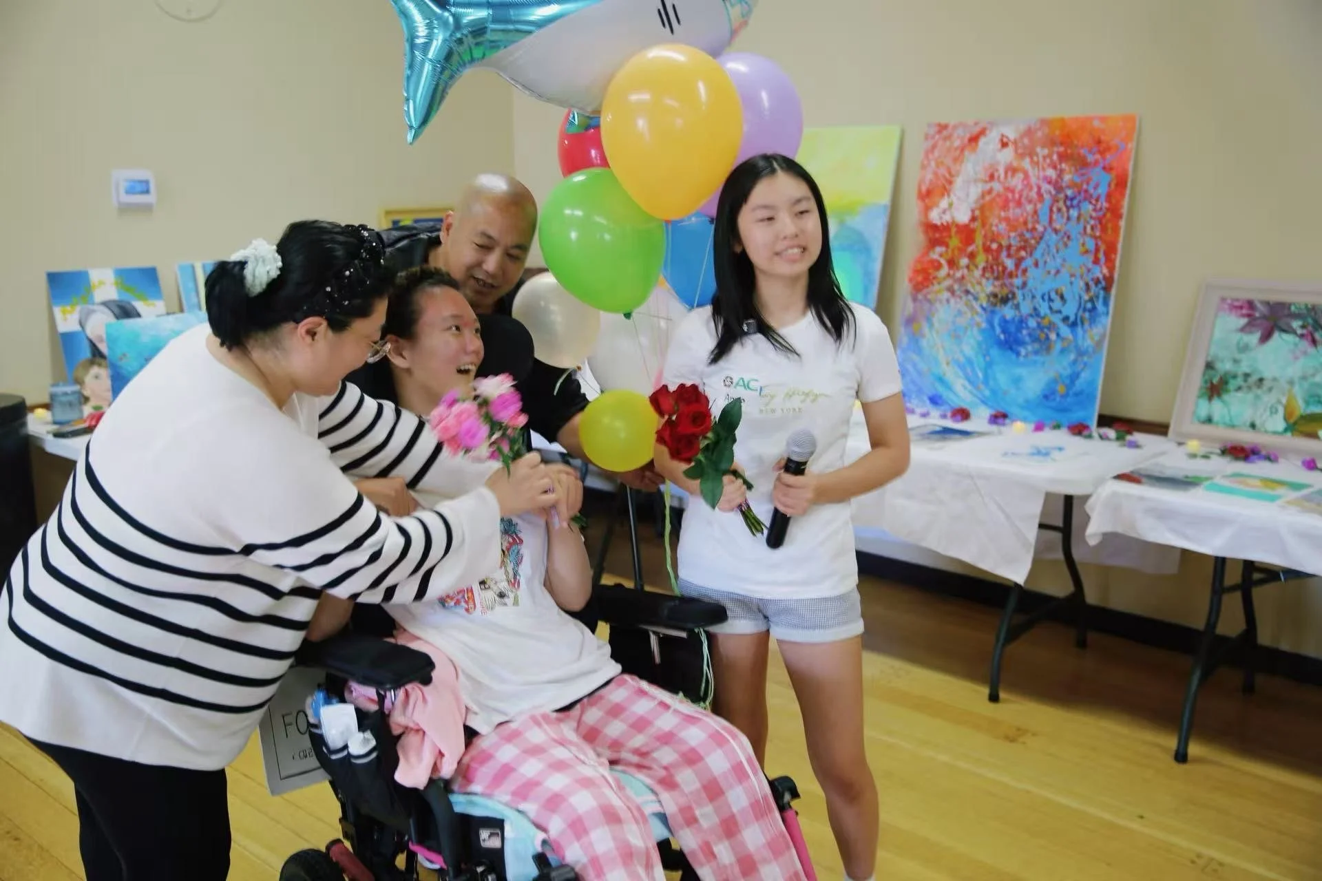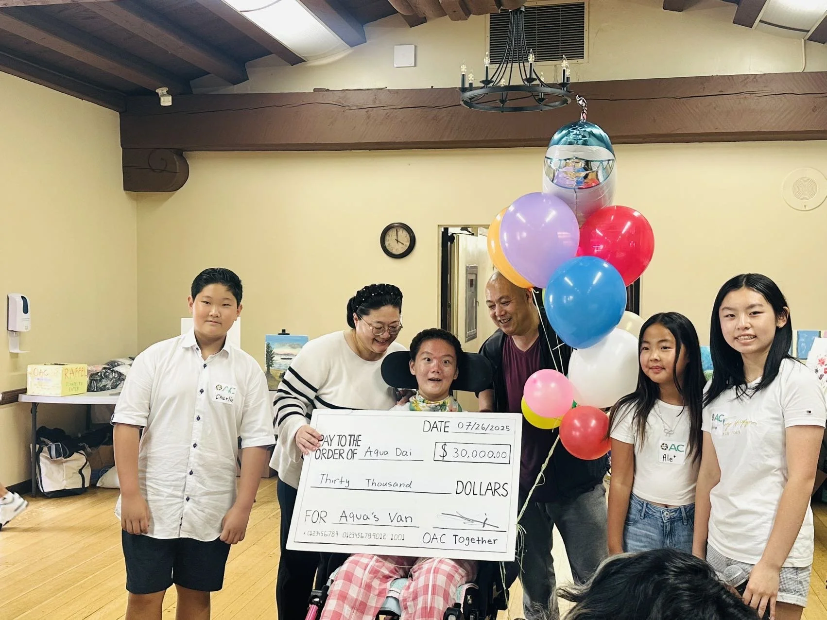 The launch highlighted Draw Together’s origins — inspired by the Together with Aqua fundraiser, which raised $30,000 to purchase and renovate a wheelchair‑accessible van for a disabled teen, Aqua. Guests participated in a community mural station, viewed over 15 donated artworks, and witnessed a symbolic check presentation celebrating the funds raised for Aqua’s dream to explore the world. Additional donations, charity sales, and a raffle raised $2,000 to support children with disabilities.